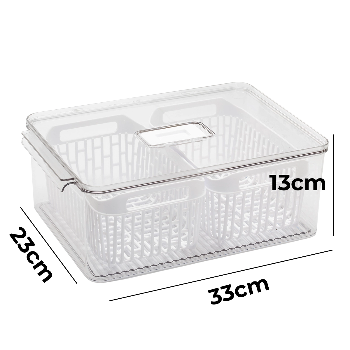 Feitos com material resistente e de alta qualidade, esses organizadores são ideais para evitar bagunça e facilitar o dia a dia na cozinha. Seu design transparente permite visualizar os alimentos rapidamente, reduzindo desperdícios e tornando a rotina mais prática.